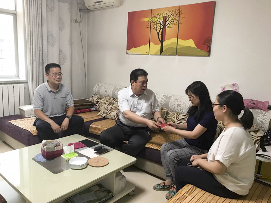鱼书记详细询问了师阳同志的病情,并叮嘱他们有什么困难要及时向单位反映。师阳同志的家属表示一定会以积极的态度解决好当前遇到的困难,同时对财政局党委和地税局总支对他们家的关心表示感谢。
